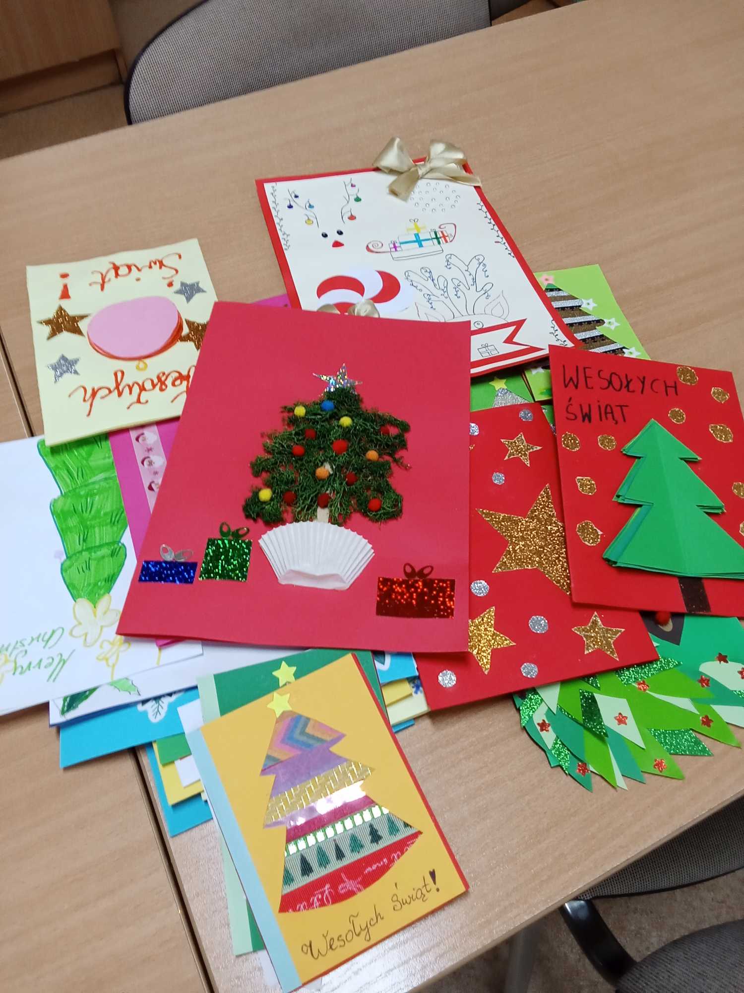 W czasie przedświątecznych przygotowań pamiętamy o tych, którzy czekają na odrobinę miłości. Uczniowie naszej szkoły przygotowali karty świąteczne ,,Moc życzeń. Boże Narodzenie.” Słowa miłości, pamięci i nadziei trafiły do podopiecznych Domu Opieki Społecznej w Starych Lipkach, Domu Opieki Leśna Góra w Kamieńczyku, a także do Domu Dziecka Pod Kasztanami w Siedlcach.