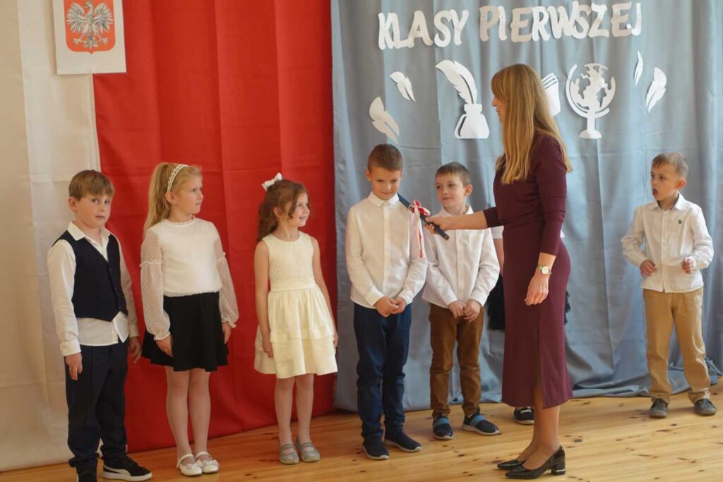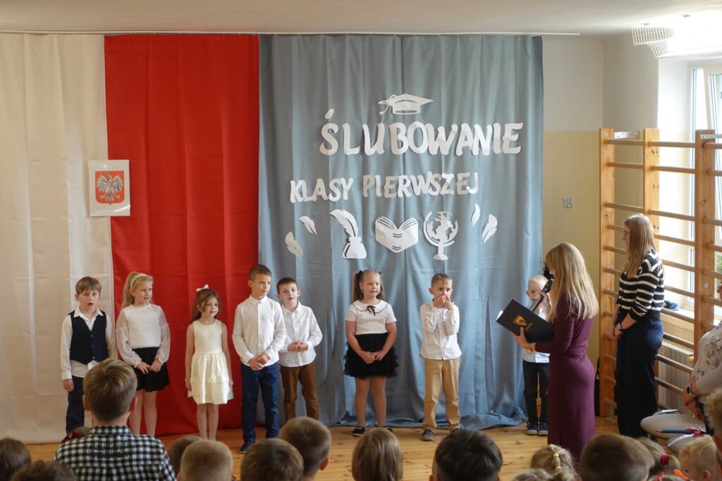 13 października w naszej szkole odbyła się uroczystość ślubowania i pasowania uczniów klasy pierwszej. To wyjątkowy dzień, w którym najmłodsi uczniowie oficjalnie zostali przyjęci do grona społeczności szkolnej. Pierwszoklasiści zaprezentowali piękny program artystyczny, po czym złożyli ślubowanie. Następnie pani dyrektor dokonała symbolicznego pasowania na ucznia.