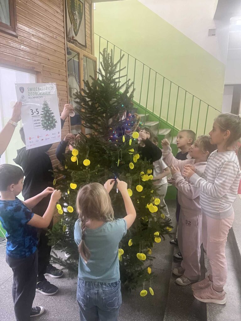 W tym roku nasza szkoła włączyła się w ogólnopolską akcję „Świeć blaskiem z odblaskiem -Bądź widoczny!”, której celem jest promowanie bezpieczeństwa na drodze oraz przypominanie o noszeniu elementów odblaskowych, szczególnie w okresie jesienno-zimowym. W ramach przedsięwzięcia uczniowie wspólnie przyozdobili szkolną choinkę odblaskami, tworząc nie tylko piękną, ale przede wszystkim symboliczną dekorację. Dzięki temu przypomnieli sobie i innym, jak ważne jest, aby być widocznym po zmroku.