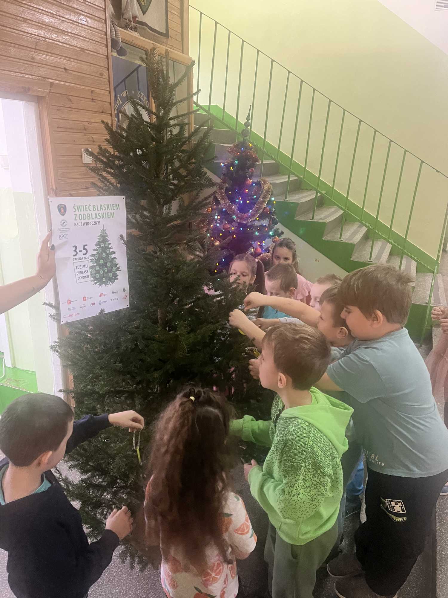 W tym roku nasza szkoła włączyła się w ogólnopolską akcję „Świeć blaskiem z odblaskiem -Bądź widoczny!”, której celem jest promowanie bezpieczeństwa na drodze oraz przypominanie o noszeniu elementów odblaskowych, szczególnie w okresie jesienno-zimowym. W ramach przedsięwzięcia uczniowie wspólnie przyozdobili szkolną choinkę odblaskami, tworząc nie tylko piękną, ale przede wszystkim symboliczną dekorację. Dzięki temu przypomnieli sobie i innym, jak ważne jest, aby być widocznym po zmroku.