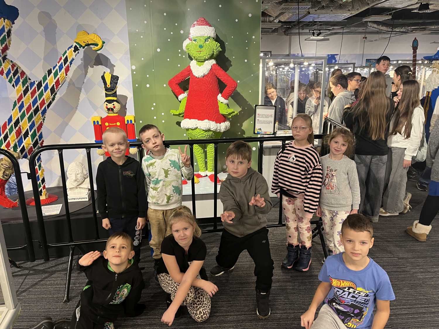 3 grudnia przedszkolaki, zerówka oraz uczniowie klas 1-3 wybrali się na wycieczkę do Warszawy. Pierwszym punktem programu była Wystawa klocków LEGO na Stadionie Narodowym, gdzie dzieci mogły podziwiać budowle z klocków, interaktywne instalacje oraz strefy kreatywnej zabawy. Następnie cała grupa udała się do kina na film „Mysz masz na święta”.